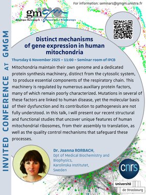 Invited GMGM seminar: Dr Joanna RORBACH (Karolinska Institutet, Sweden)